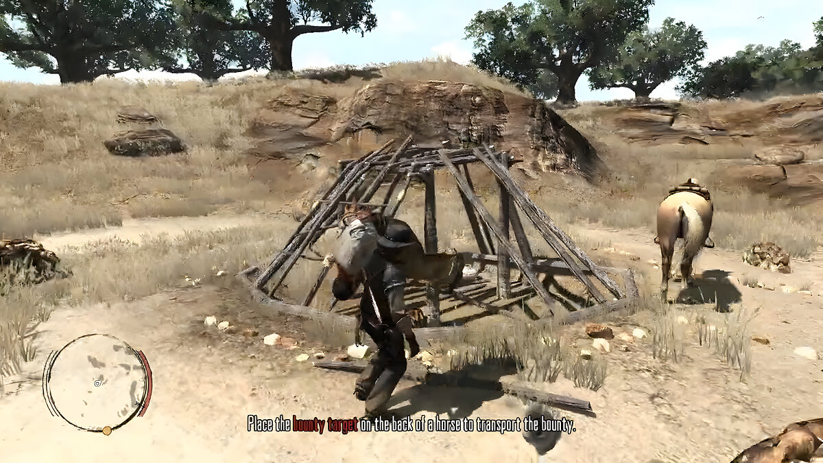 Прибыв на место, вы столкнетесь с многочисленной свитой преступника. Уничтожьте всех недоброжелателей, затем используйте лассо, чтобы связать зачинщика и доставить его живым в пункт выдачи награды. Помните, что если вы убьёте его, то не получите вознаграждение, так что действуйте осторожно и планируйте свои действия.