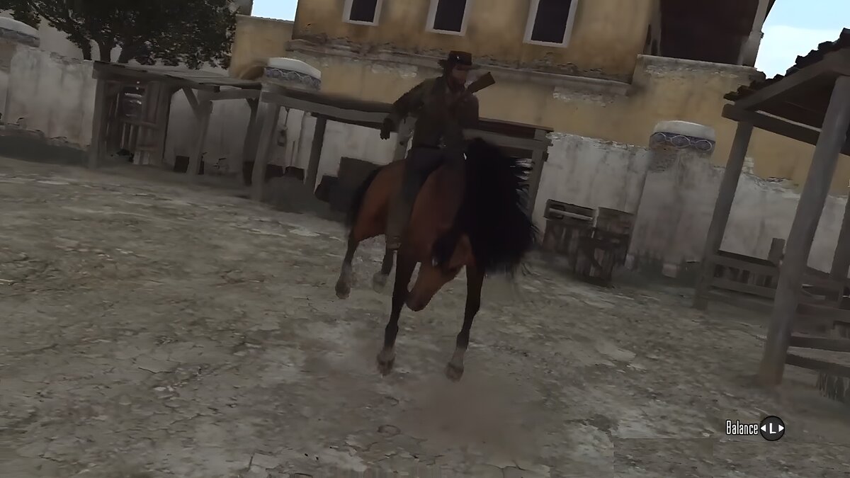 Суть задания проста: используя лассо, притяните лошадь из загона к себе и оседлайте её, при этом балансируя.