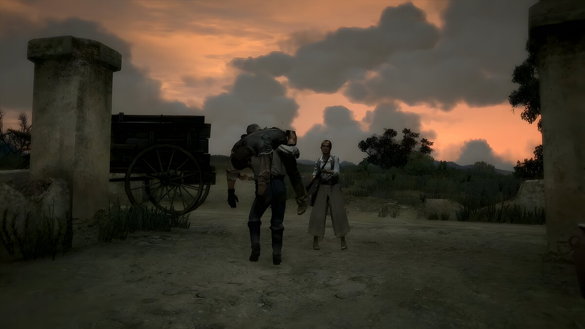 Распрощавшись с приятелем, подойдите ближе к форту, чтобы поговорить с Биллом. Он не решается поговорить, видя подвох, и решается подстрелить вас. К счастью вас обнаруживает Бонни Макфарлэйн — женщина, которая и спасет вам жизнь.
