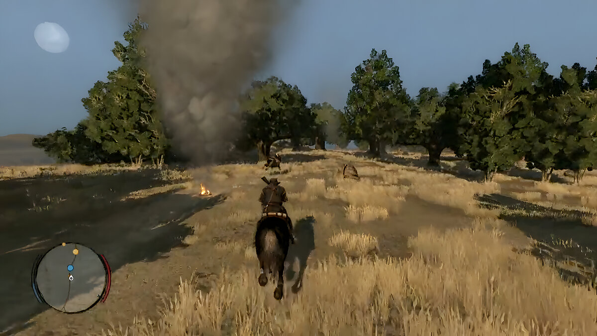 Войдя внутрь, смотрите катсцену, после которой Женщина решит бросить вам вызов — кто из вас более опытный ездок на лошади. Оседлайте своего коня и начинайте забег. Так как трасса, по которой нужно бежать, будет отмечена огнем с дымом, а конь главного героя намного быстрее, чем у соперницы, вам не составит труда одержать победу.