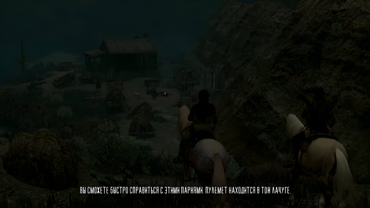 Войдите внутрь конюшни и смотрите катсцену. Сразу после вам следует убить Френча и Велша, чтобы Ириш остался в живых. Следуйте за новым знакомым. Добравшись до места назначения, вам придется разобраться с бандитами, что захватили территорию вокруг лачуги, в которой хранится пулемет.