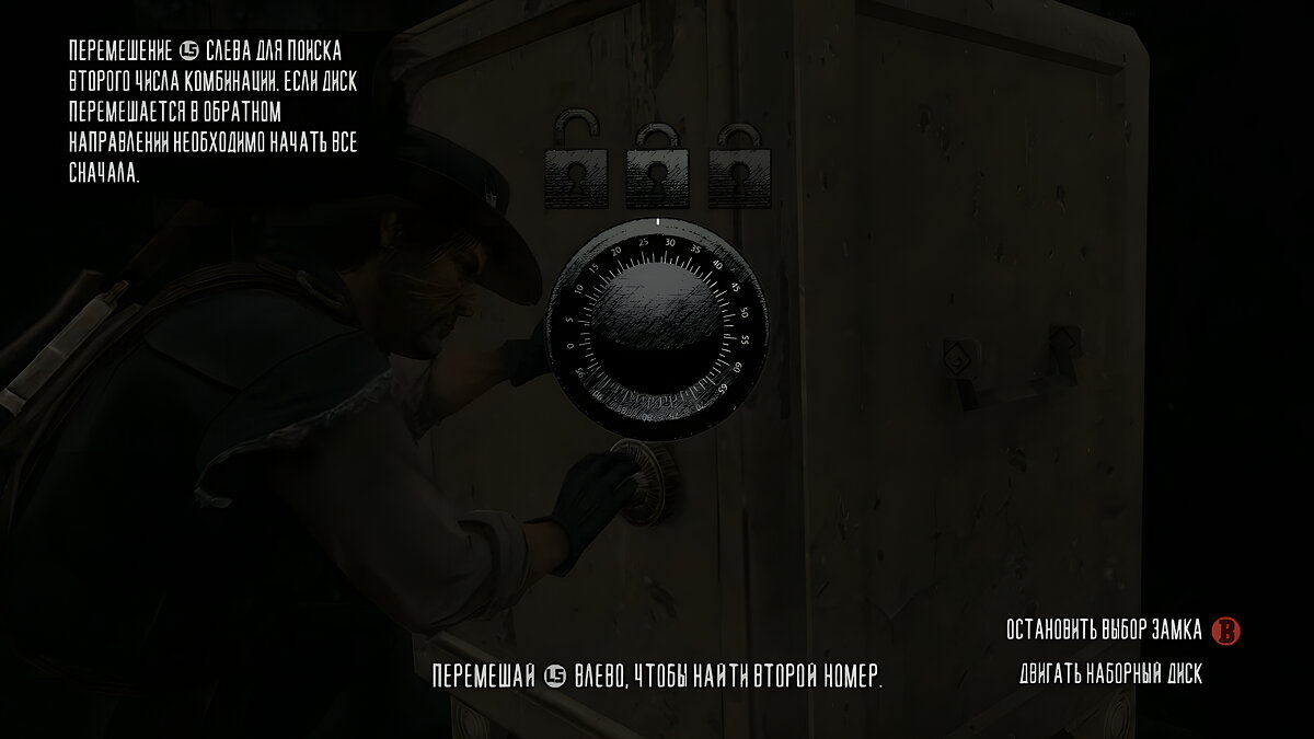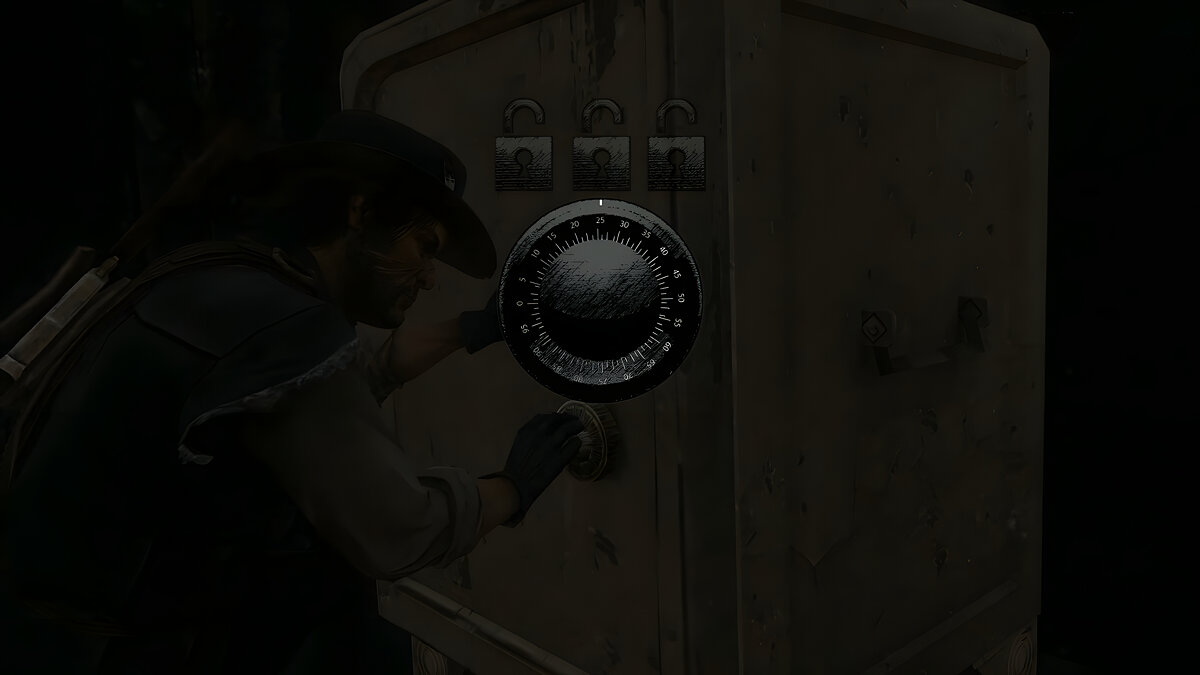 Вернитесь к ранее взорванному вагону, чтобы взломать сейф с ценным содержимым. Пароль от первого замка — диапазон между 20 и 30.