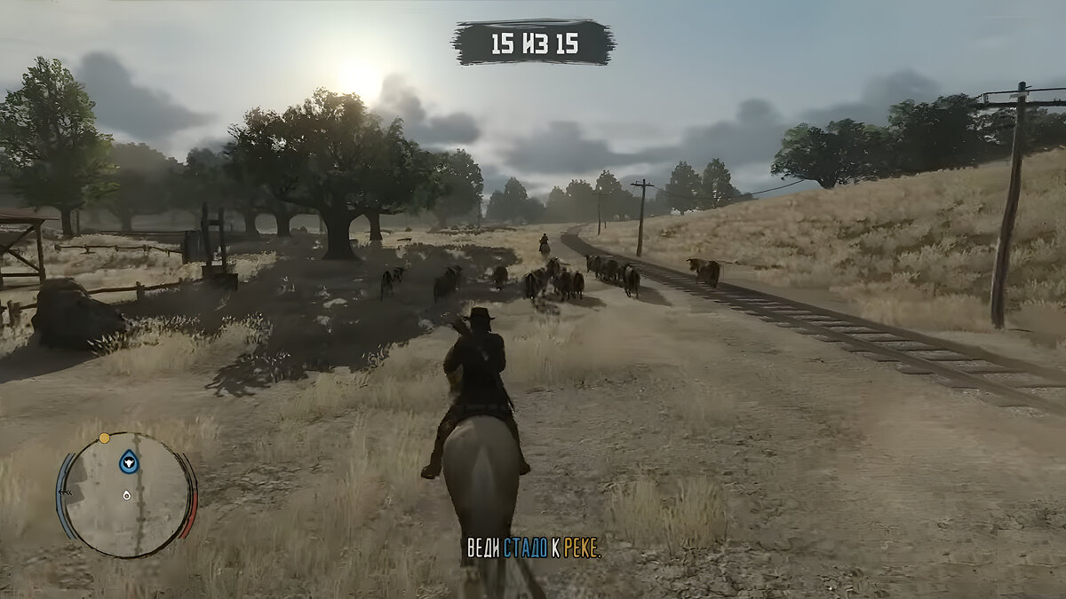 Добравшись до ранчо, поговорите с отцом девушки, после чего отправляйтесь в загон к Бонни. Поговорив с ней, выведите стадо коров из загона и ведите к реке.