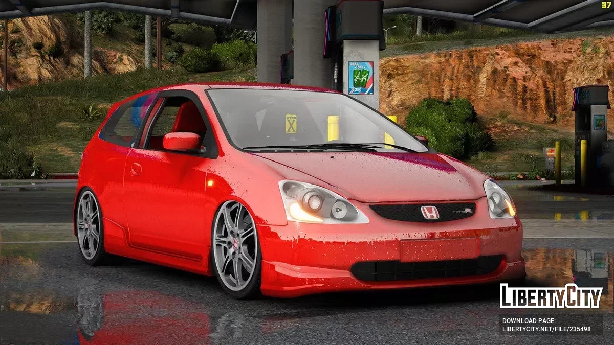Honda Civic Type R (EP3) Передняя часть: Фирменная агрессивная форма переднего бампера с широким центральным воздухозаборником подчёркивает спортивный характер модели. Компактные овальные фары с чёрной внутренней окантовкой придают внешности дин...