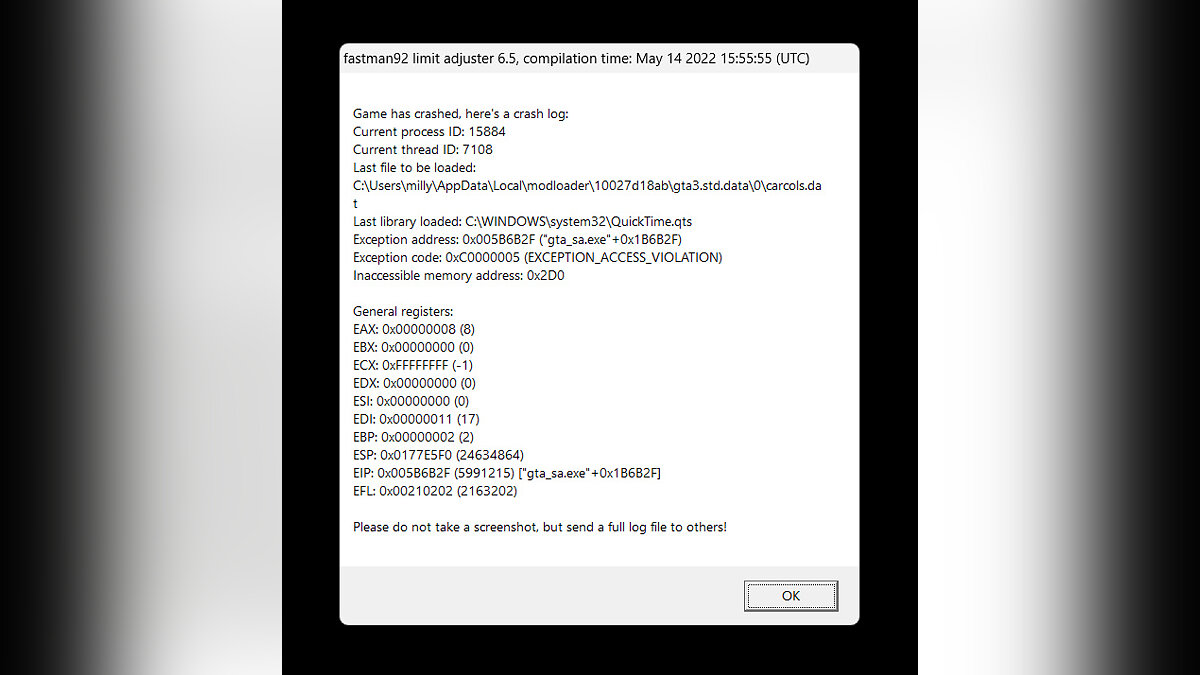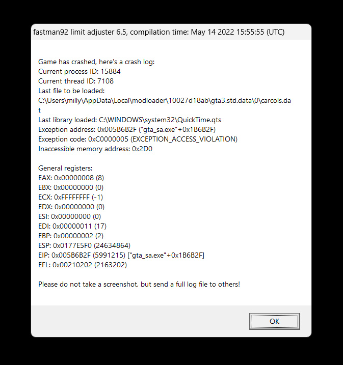 I already put all the mods in order including fastman limiter, I also already checked the IDs for id conflict but it still crashes. Any idea what caused the crash?