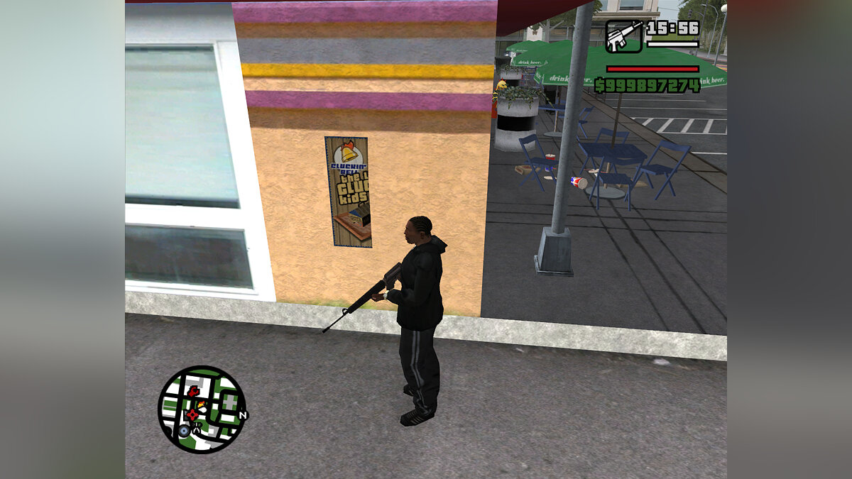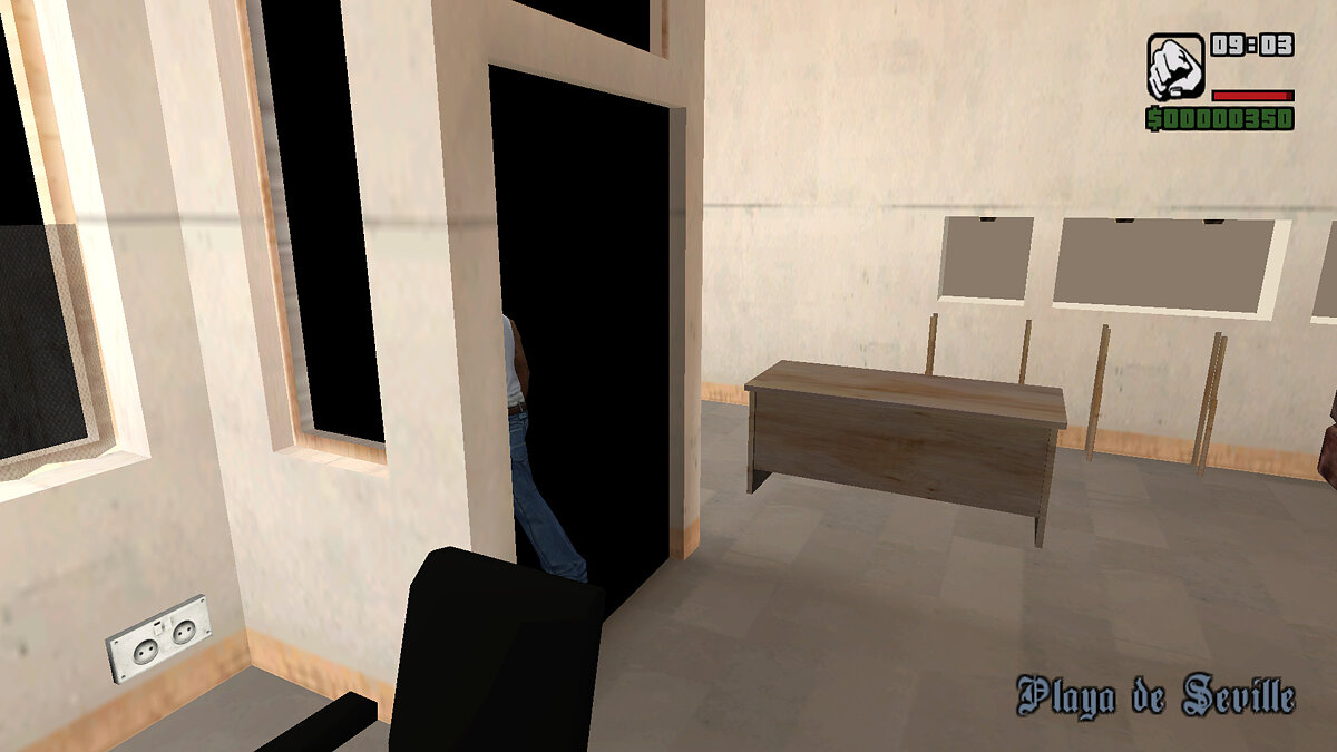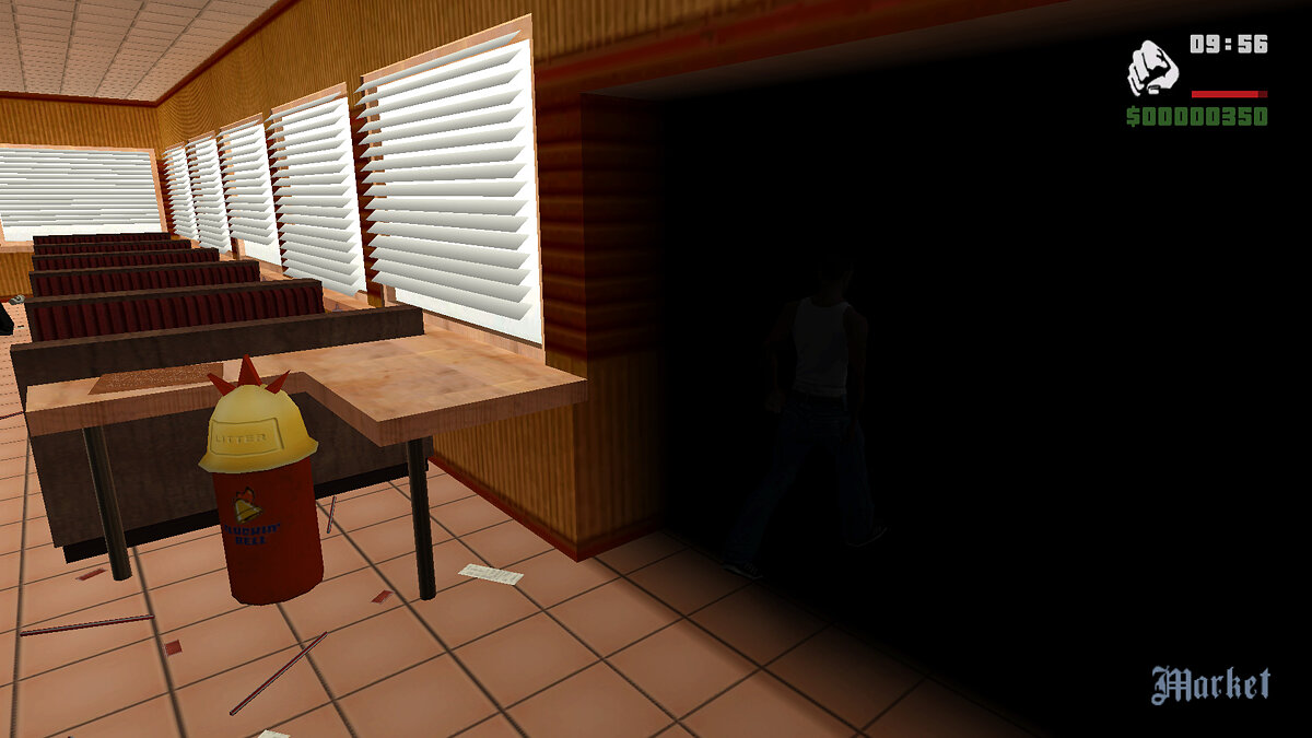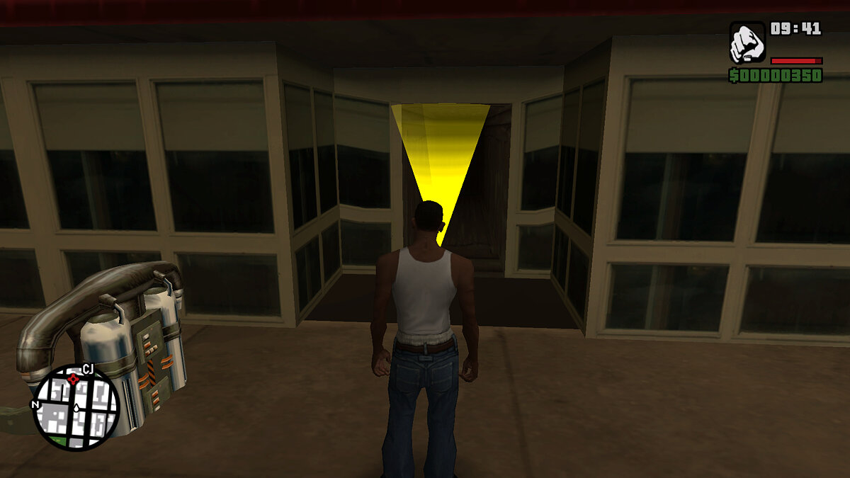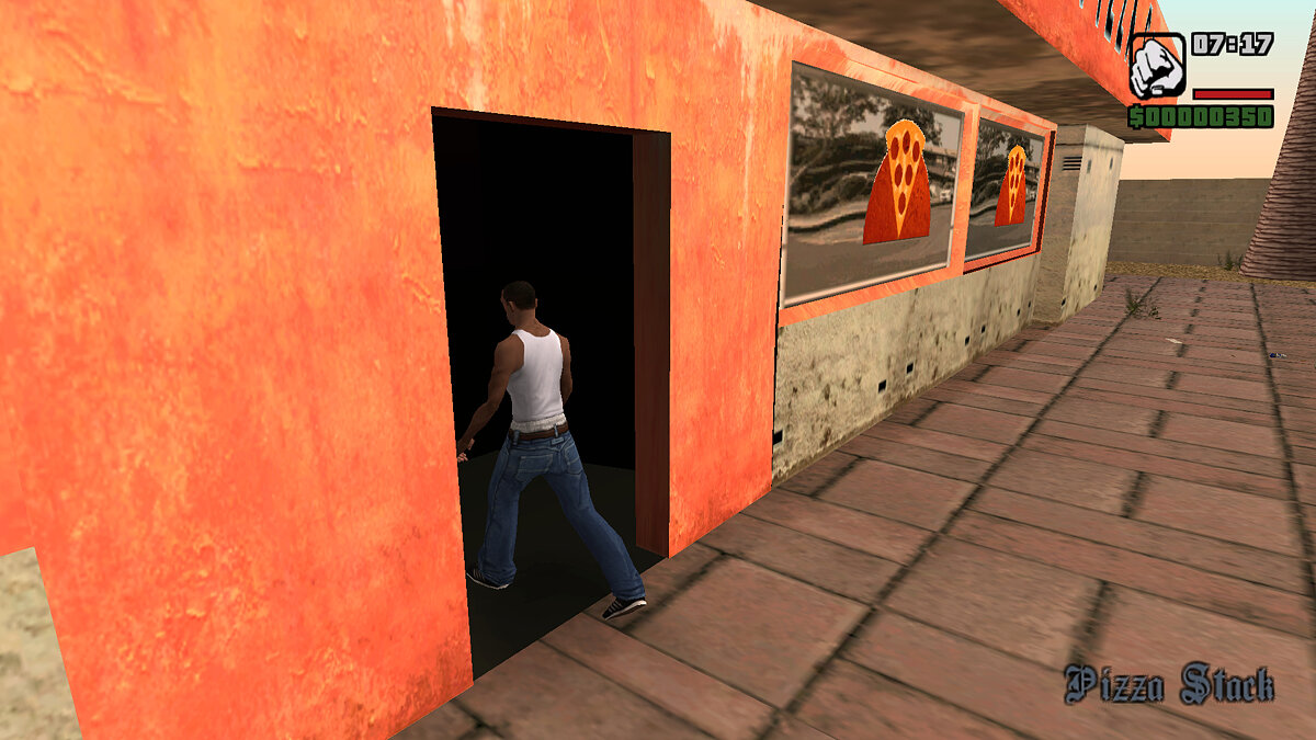 When CJ enters certain interiors —specifically the pizzeria or a shop with the typical store door— the door disappears in the middle of his entry animation. From my testing, the main affected door models are: