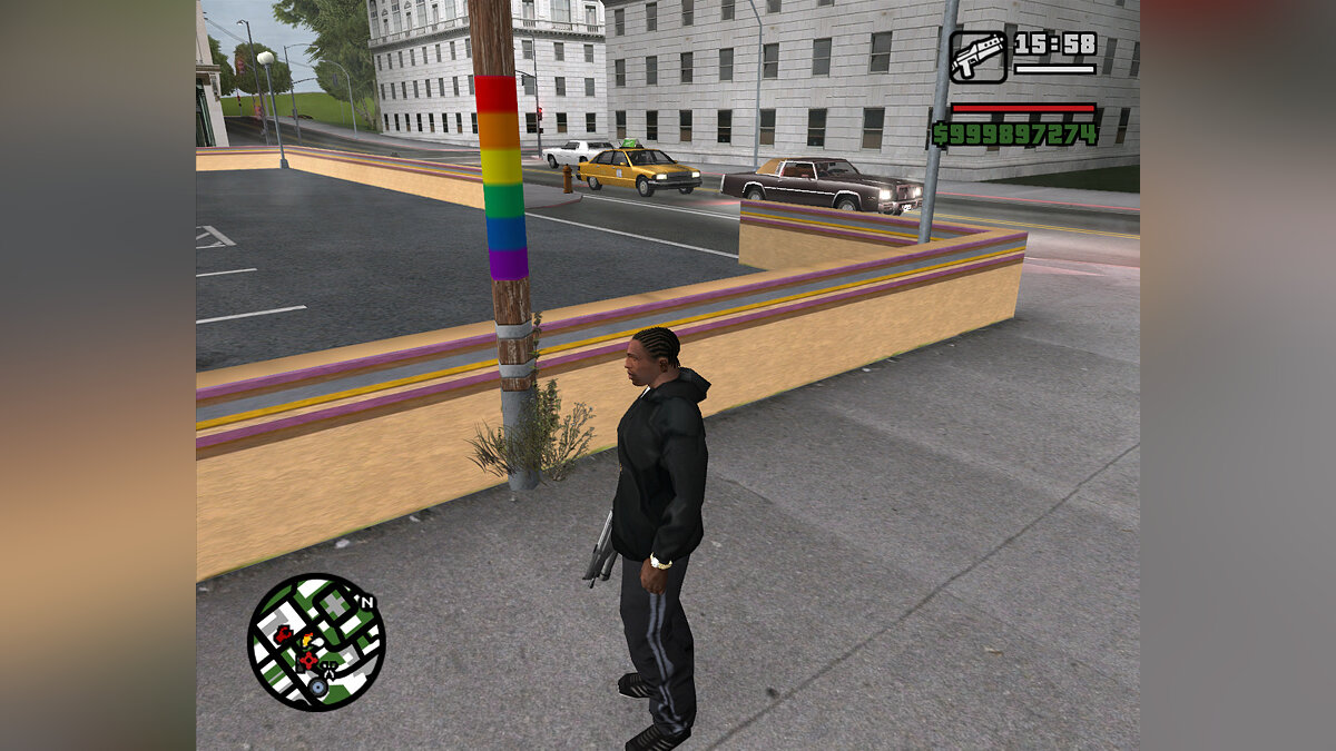 there is a small glitched bug with the clucking bell posters in san fierro,i hope it gets fixed in the future,happends with proper fixes installed in,also some random grass appears near the poles
