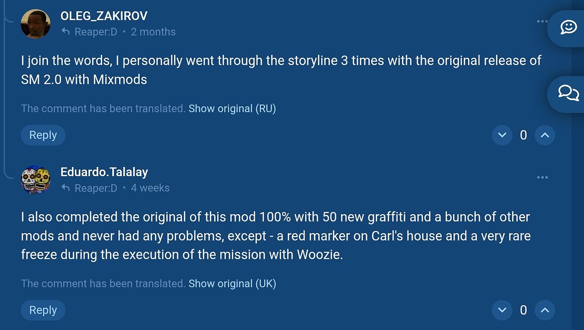 Вообщем с чего бы начать... Ну во-первых на миссии Пирс 69 куча багов 1) В сцене, где триады идут на крышу, появляется CJ 2) Люди Мендеза просто НЕ стреляют 3) После отстрела из снайперки всех парней на крыше, CJ просто сам стреляет, управление не работает Ну и под конец, маркеры точек для фотографирования всегда видны в любое время суток. Специально проверил на версии Story Mode на которой играл до этого, вообще ни одного багов из этих не встретил, так что тут проблема именно в этом фиксе.