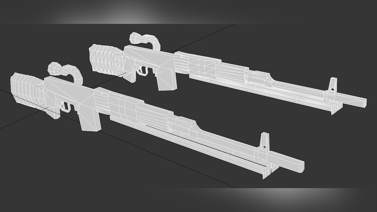 С ТАКОЙ сеткой и текстурами ты лишаешься права называть свои модели оптимизированными. Твоя модель анти-оптимизирована. У тебя шестигранный параллелепипед одной из сошек состоит из 94-х треугольников. Оригинальный Desert_eagle целиком состоит из 69-ти треугольников! Текстуры — это просто картинки, а не развёрнутые карты, ещё и разрешение не в степени двойки!