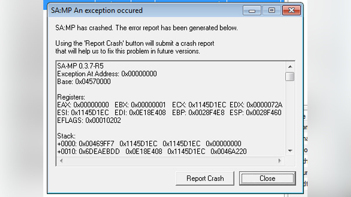Samp crash