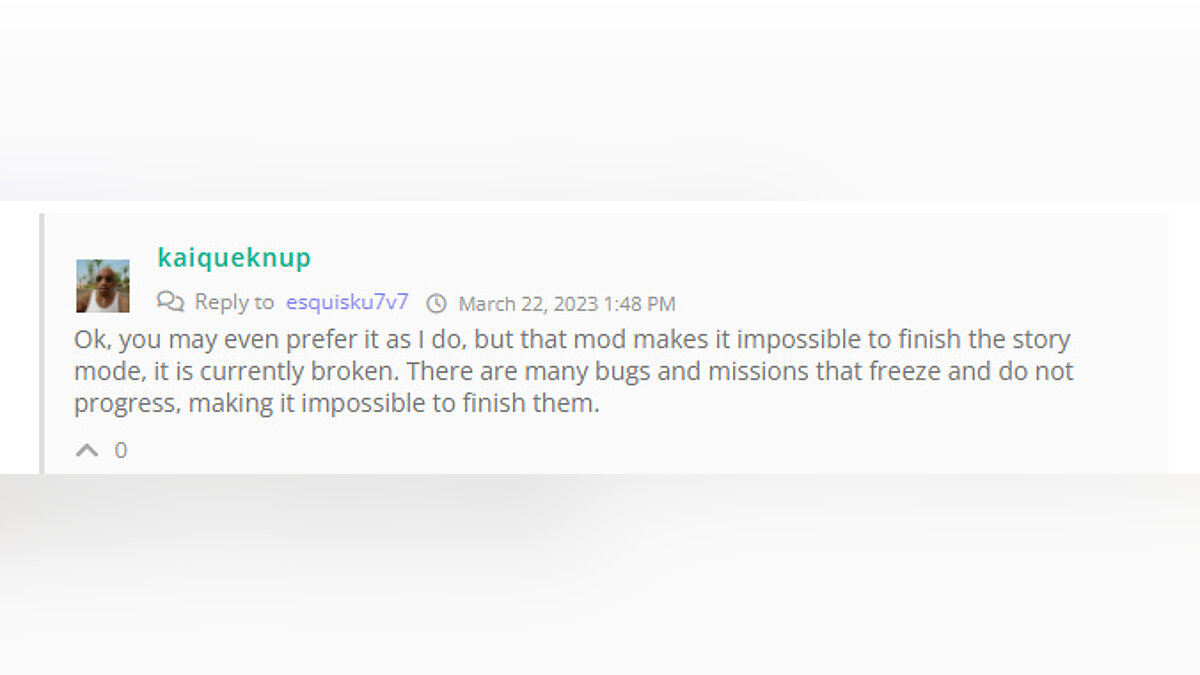 Оригинальный мод (с mixmods) ломал main.scm файл примерно в сан-фиерро / начале лас-вентураса, то есть сам сейв ломался и дальнейшее прохождение было невозможным,в этом моде тестировалось полноценное прохождение? или это только фикс мелких деталей?