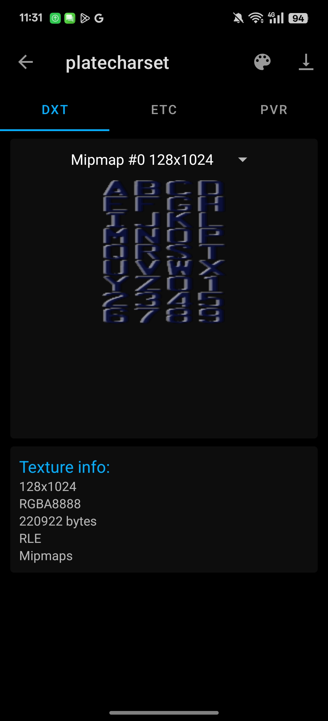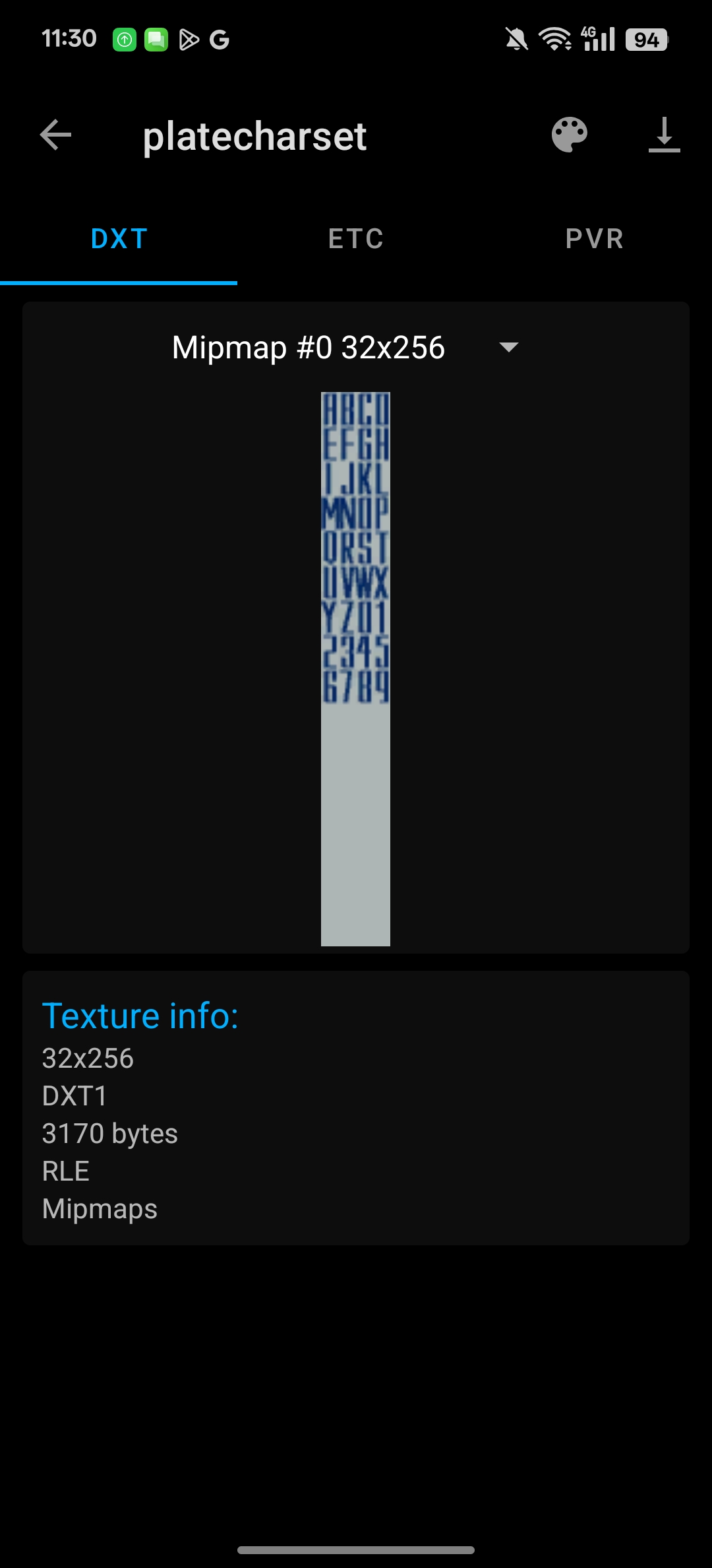 Oye bro veo que sabes sobre texturas para móviles estoy tratando de instalar ésta textura de las placas de los vehículos está en una resolución más grande y por eso tiende a tener este error, me podrías orientar por favor