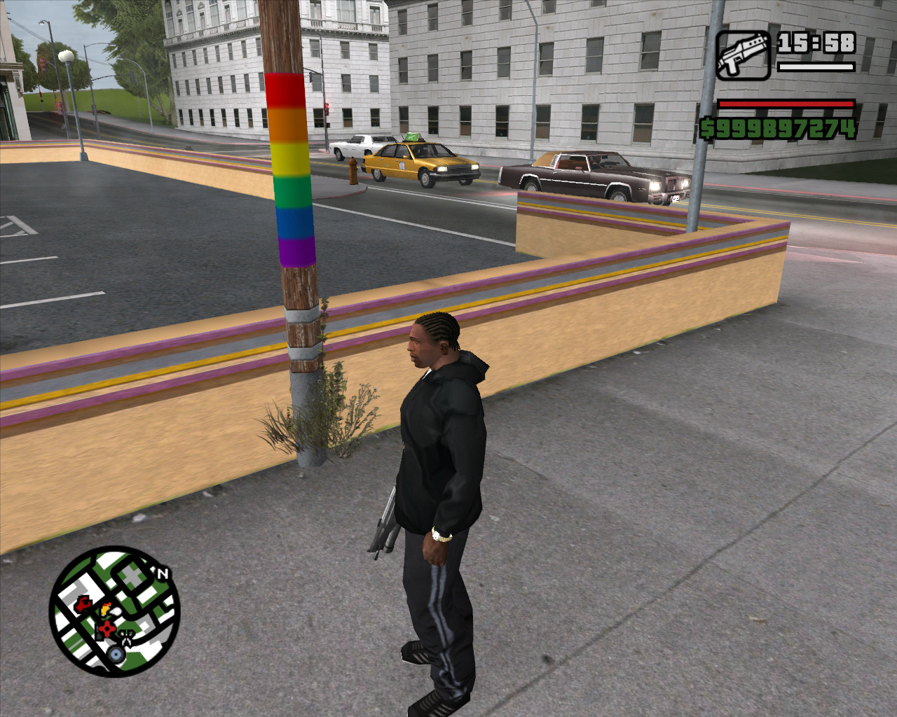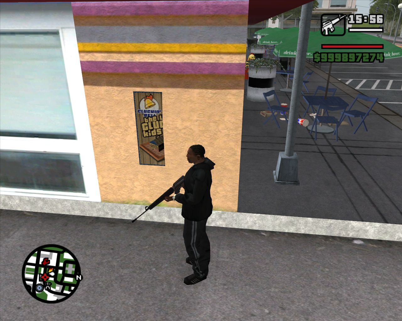 there is a small glitched bug with the clucking bell posters in san fierro,i hope it gets fixed in the future,happends with proper fixes installed in,also some random grass appears near the poles