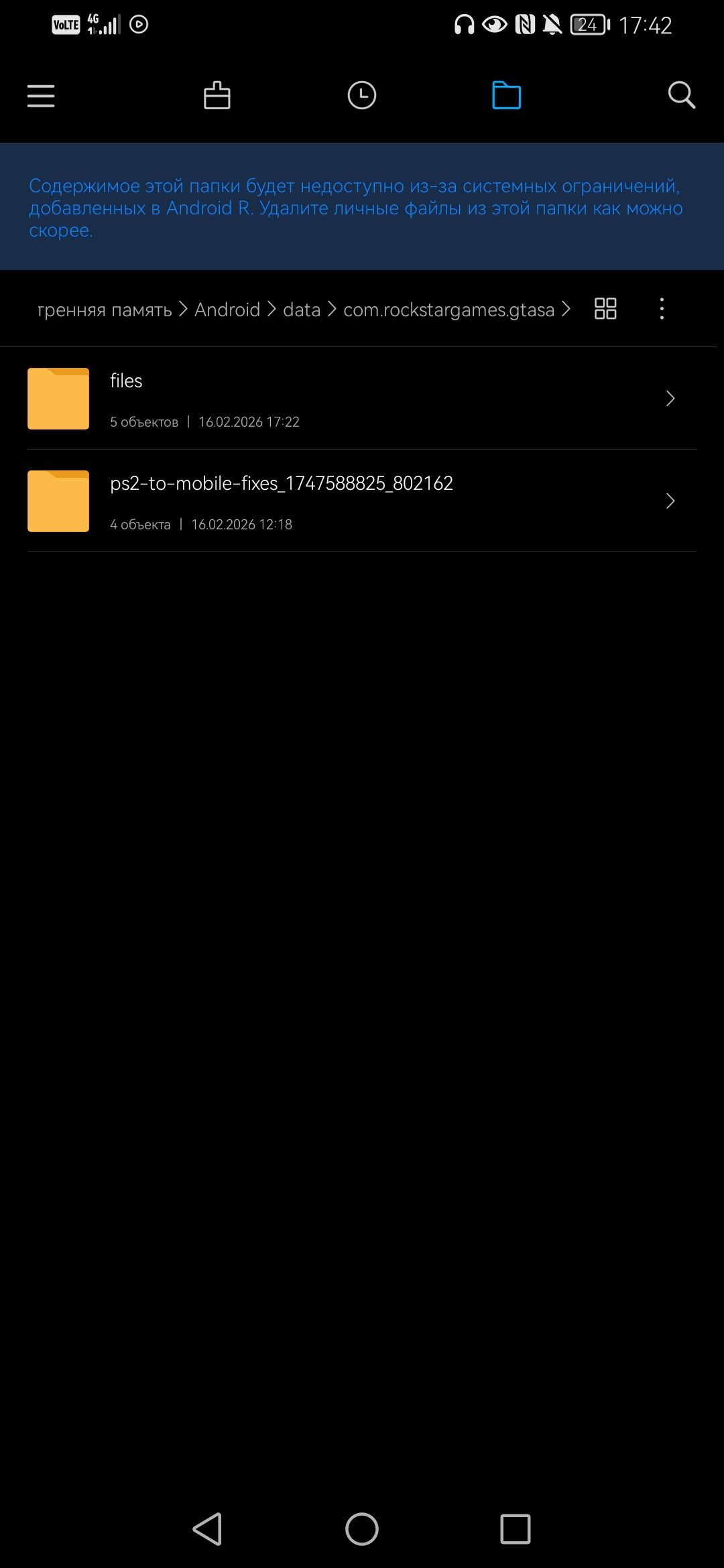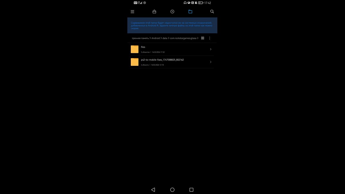 Подскажите пожалуйста, не знаю- куда перемещать файлы. Сделал android/data/com.rockstargames.gtasa закинул. Больше никаких действий. А до этих действий, чистая игра лагала 30-40фпс. После стало 60фпс,лаги ушли. В игре ничего не поменялось кроме потери лагов. Скрин.