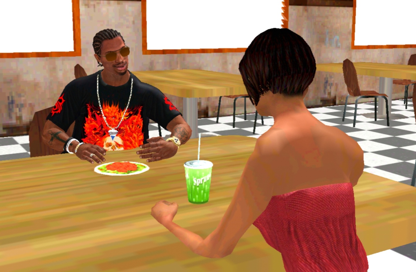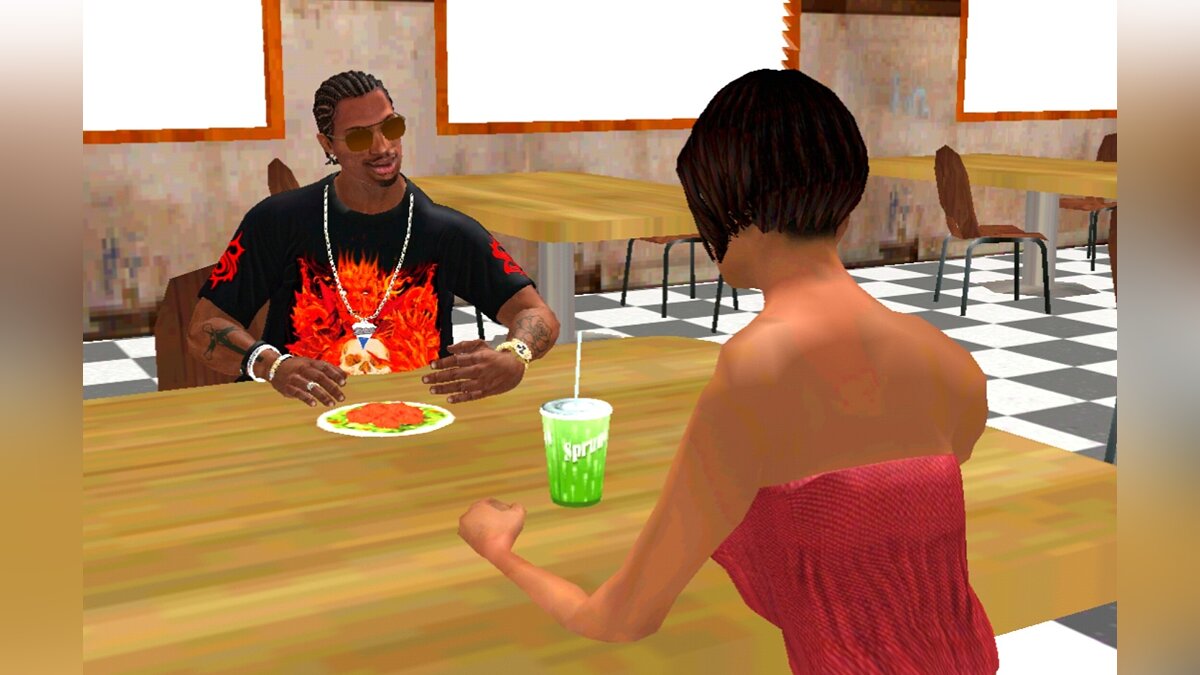 Текстуры качественные, но есть один огромнейший минус, который перекрывает все плюсы: все персонажи, так сказать "занижены", обувь проваливается в текстуры, руки девушек на свиданиях проваливаются в стол, официанты в закусочных запихают поднос прям в текстуру стола. Плюс много персов с белыми текстурами, лажа, короче, пойду искать дальше.