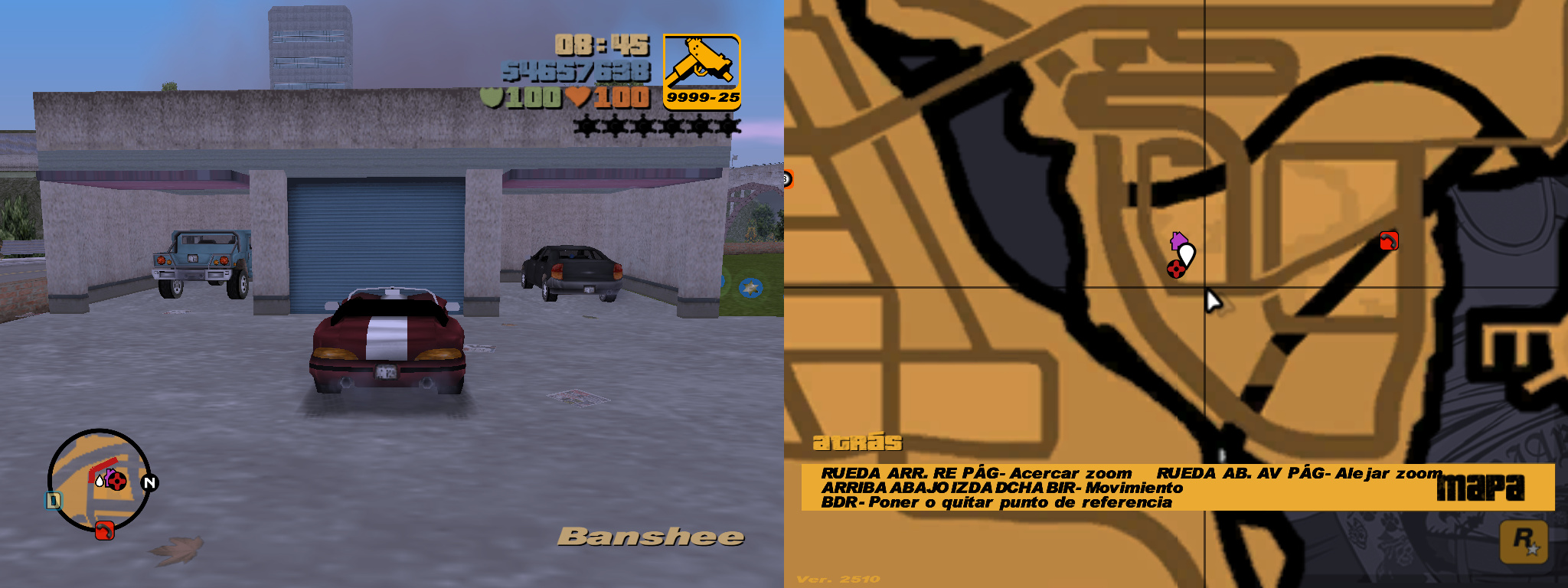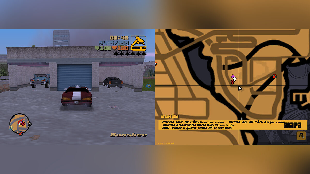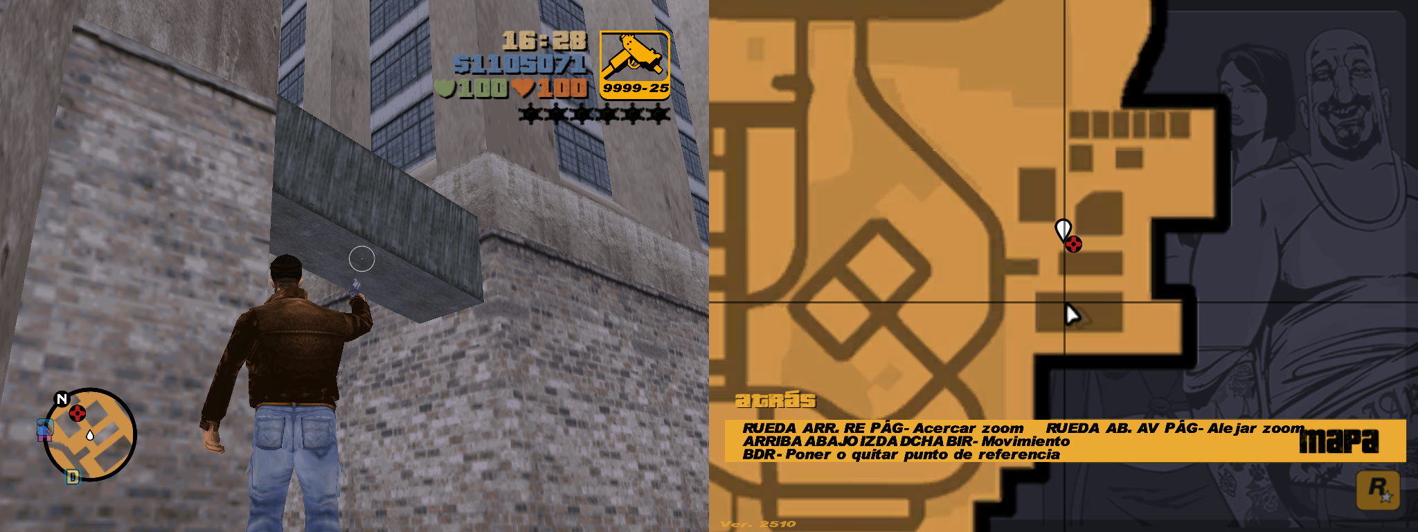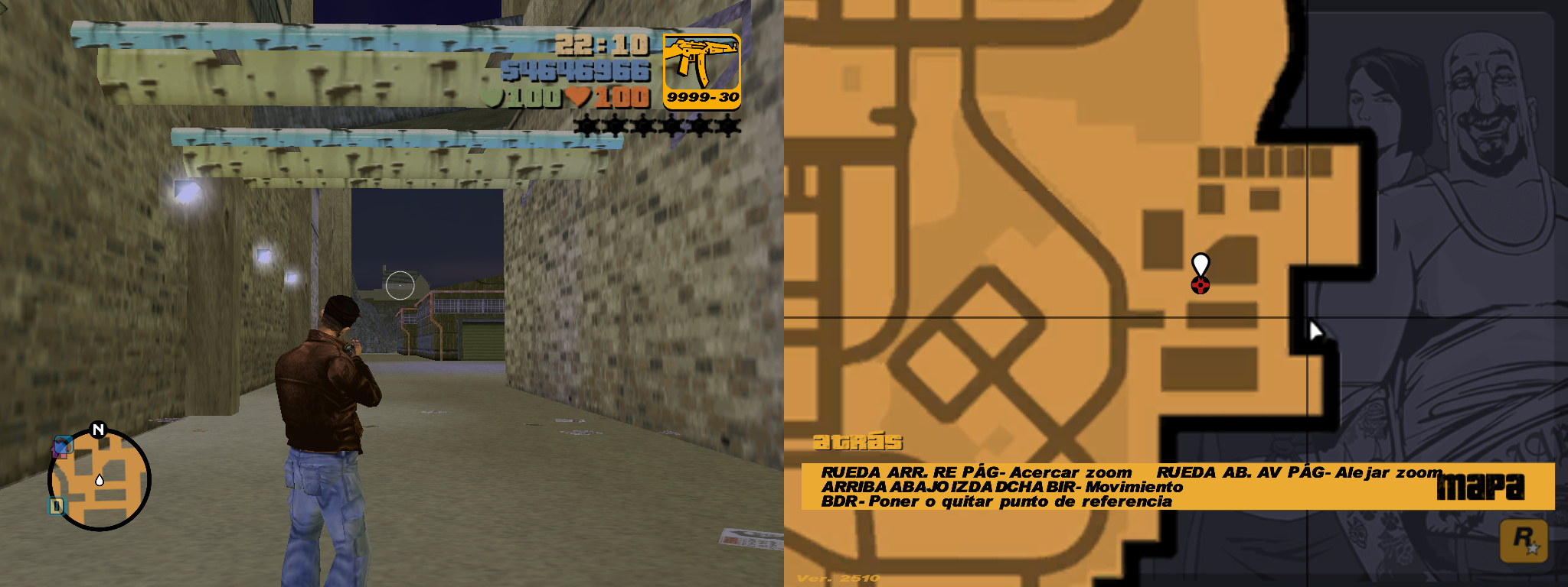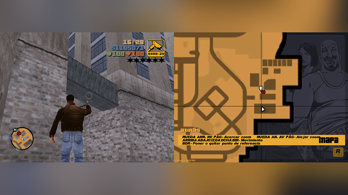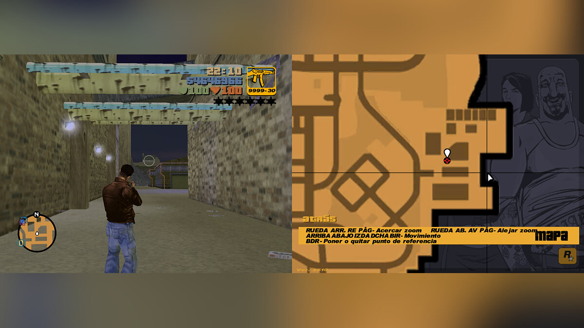 6- Problem starting a game if you save in first-person mode: This is something that surprises me a lot because in GTA VC Extended there's no problem. When saving a game in first-person mode and then loading the saved game, the camera is in third-person mode, and when walking or leaving the shelter area, the first-person camera will activate on its own (unlike GTA VC Extended, where loading a game saved in first-person mode doesn't have any problems).