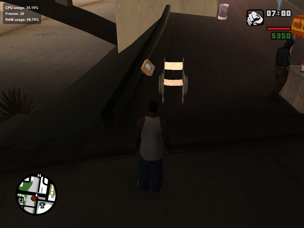 Hay un problema con "flastloader" los archivos que carga, algunos son incompatibles con el mod "propers fixers" , algunas texturas salen en blanco, aca los ejemplos; una silla bajo el puente de LS cerca del estadio de carreras, y el barco roto en la playa de los santos por al lado del faro.