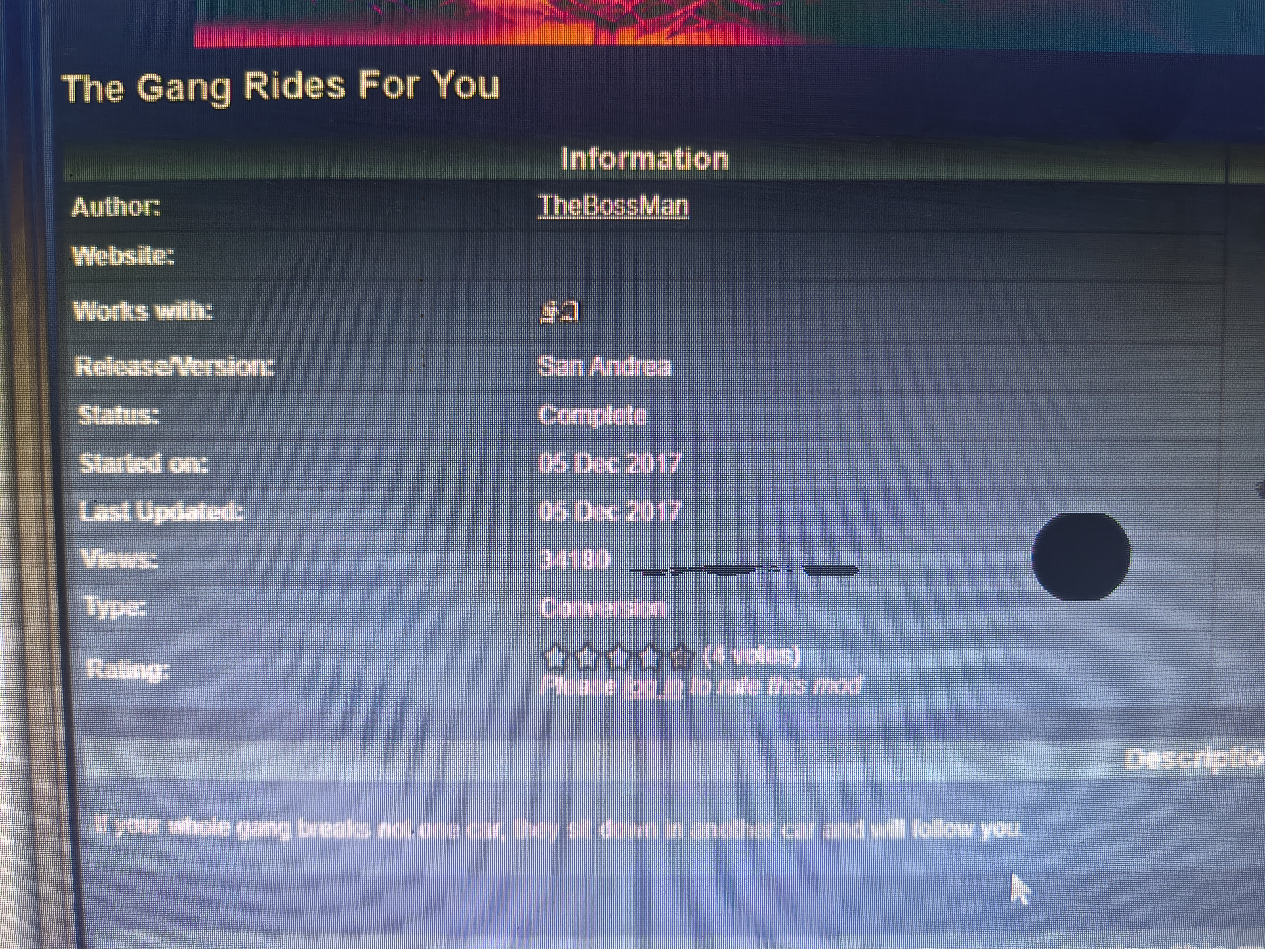 Hi, look, if there's a future update, could you implement a system where the gangs you recruit You could drive in separate cars when CJ recruits 7 members, and besides being natural, it could make sense for gangs. It already exists, but the mod is old and buggy; it's your potential for creation.