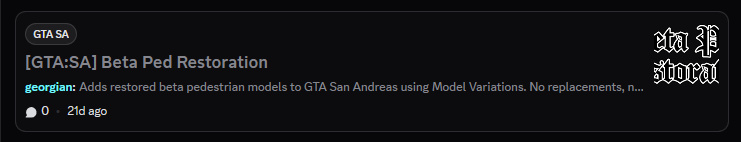thanks a lot. That's what I recommend people to do. Add peds through Model Variations. Also thanks for liking my other mods. Be prepared December 25th, something big coming up.