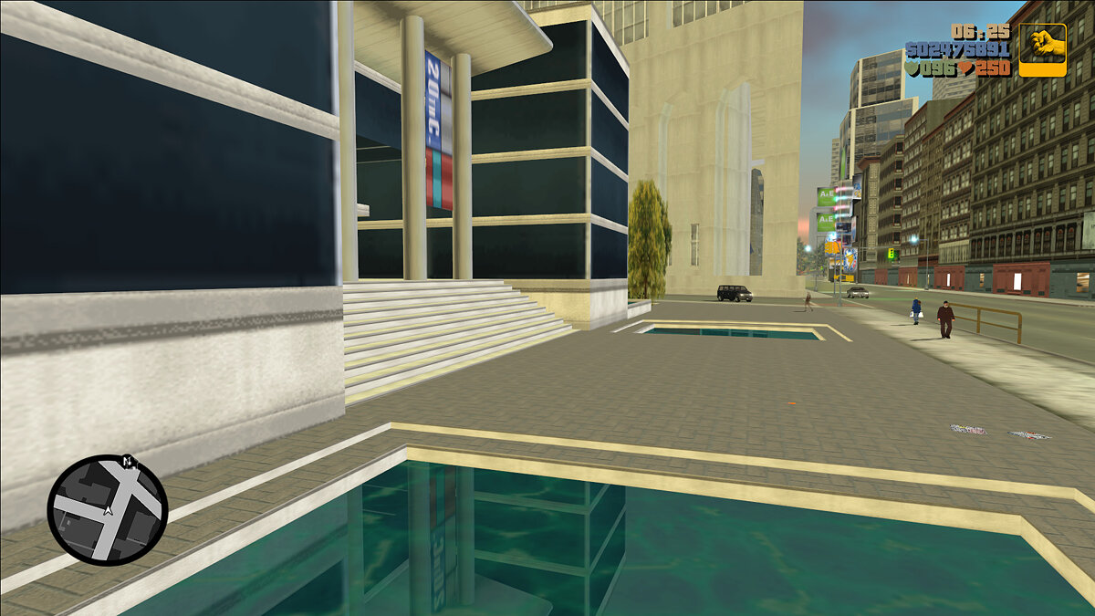 По поводу вопроса. Да на движке "RenderWare" такое возможно. В GTA III и в GTA VC — это "бассейны" у культурных центров. Под ними строятся упрощенные объекты. Так же, во всей трилогии отражения имеются у луж. В GTA SA значимое место с отражениями находится в доках San Fierro.
