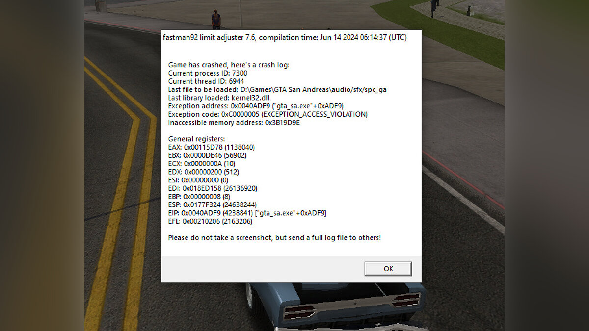 тоже самое, и причина ошибки таже всегда (kernel32), причем проблема появляется при расширении лимита памяти для игры либо при установке других скриптов и модов — короче пак играбелен исключительно при дефолтных 256 мб оперативы и без расширенных настроек в mixsets
