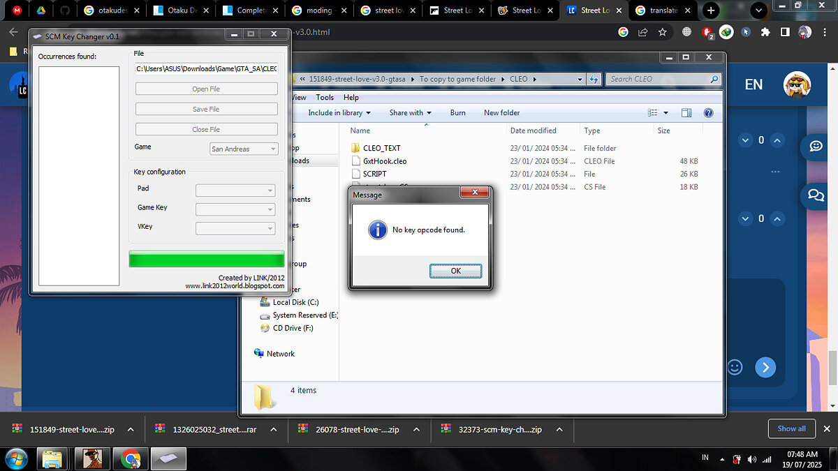 I've checked it with SCM Key Changer, and it says "No key opcode found." This might be the reason why this MOD isn't working. I've pressed the combination on my keyboard according to the instructions in the description, but it doesn't work at all.