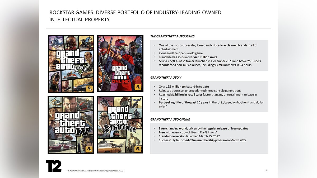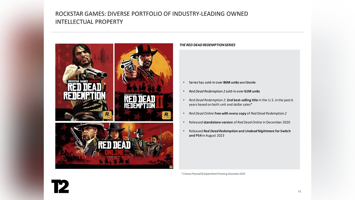 В целом серии Grand Theft Auto и Red Dead Redemption разошлись тиражом в 420 миллионов и 86 миллионов копий соответственно.
