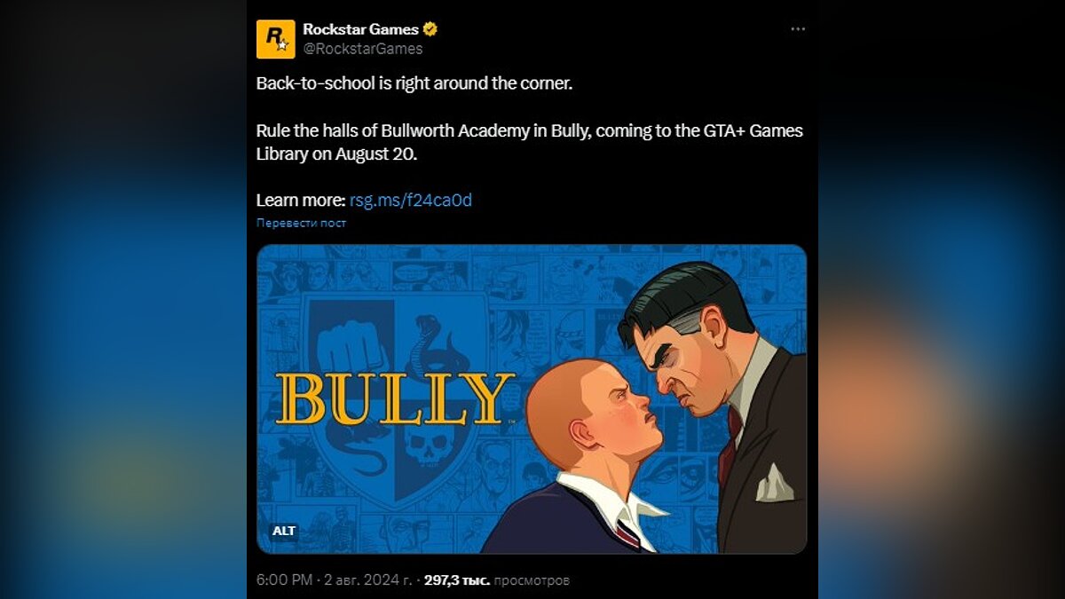 Rokstar Games официально объявила дату, когда Bully пополнит список игр в GTA+. Владельцы подписки смогут сыграть уже 20 августа.