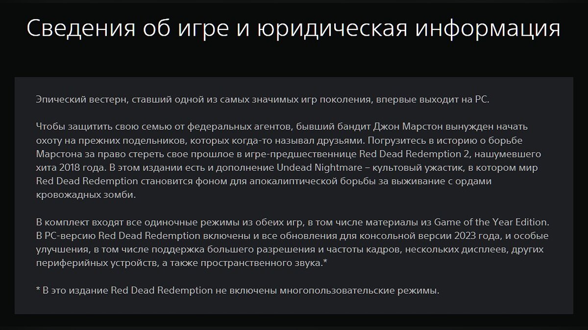 Пользователи сети заметили необычные изменения на странице Red Dead Redemption в магазине PlayStation. С недавних пор на ней отображается описание ПК-версии, которую официально еще не анонсировали.