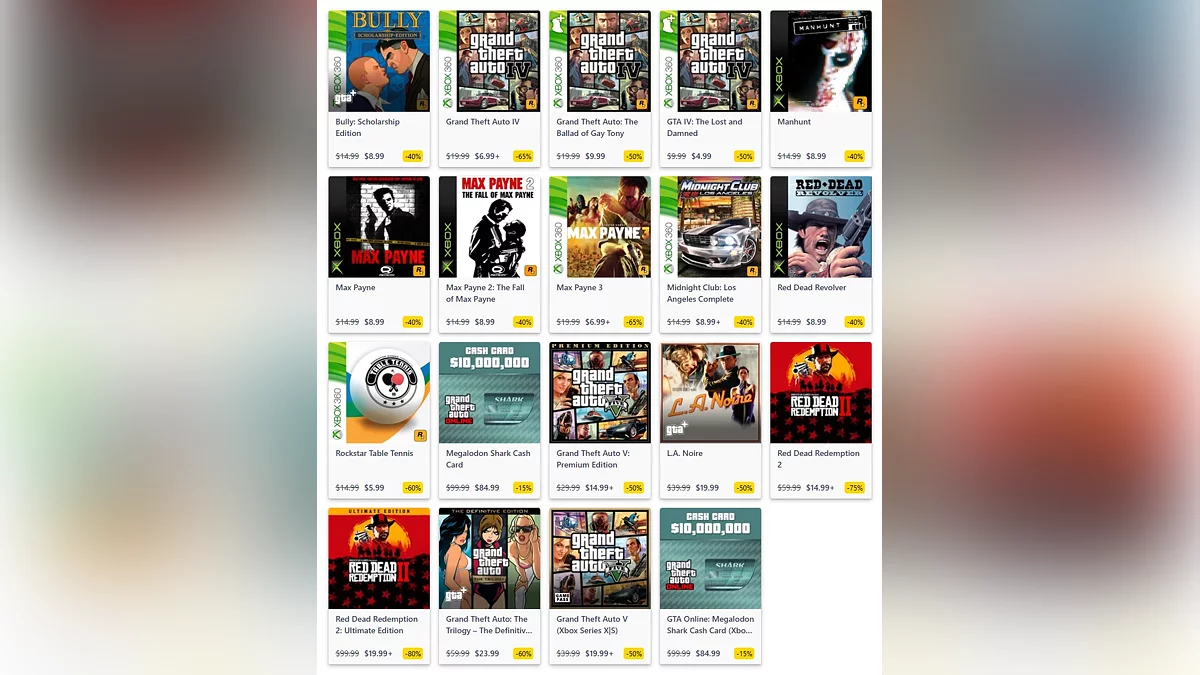 В сервисе Xbox Store стартовала распродажа игр компании Rockstar Games, которая продлится до 27 октября. В акции приняли участие Red Dead Redemption 2, Grand Theft Auto 5, L.A. Noire и не только.