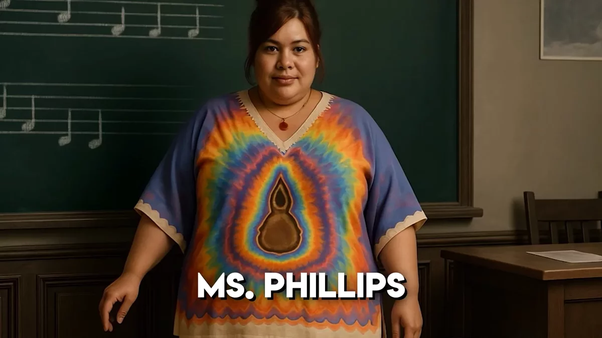 На видео показаны такие персонажи, как Джимми Хопкинс, Гэри Смит, мисс Дэнверс, мистер Бертон, Биф Тэйлор, Руди, Джонни Винсент, Рассел Нортроп, Директор Крэбблснитч, Пит Ковальски, Дейдра Филлипс, Пинки Готье, Эрнест Джонс, Лола Ломбарди, Кристи Мартин, Беатрис Трюдо и Юнис Пунд.