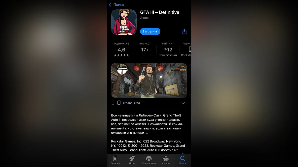 Бесплатную версию GTA 3 Definitive Edition убрали из App Store