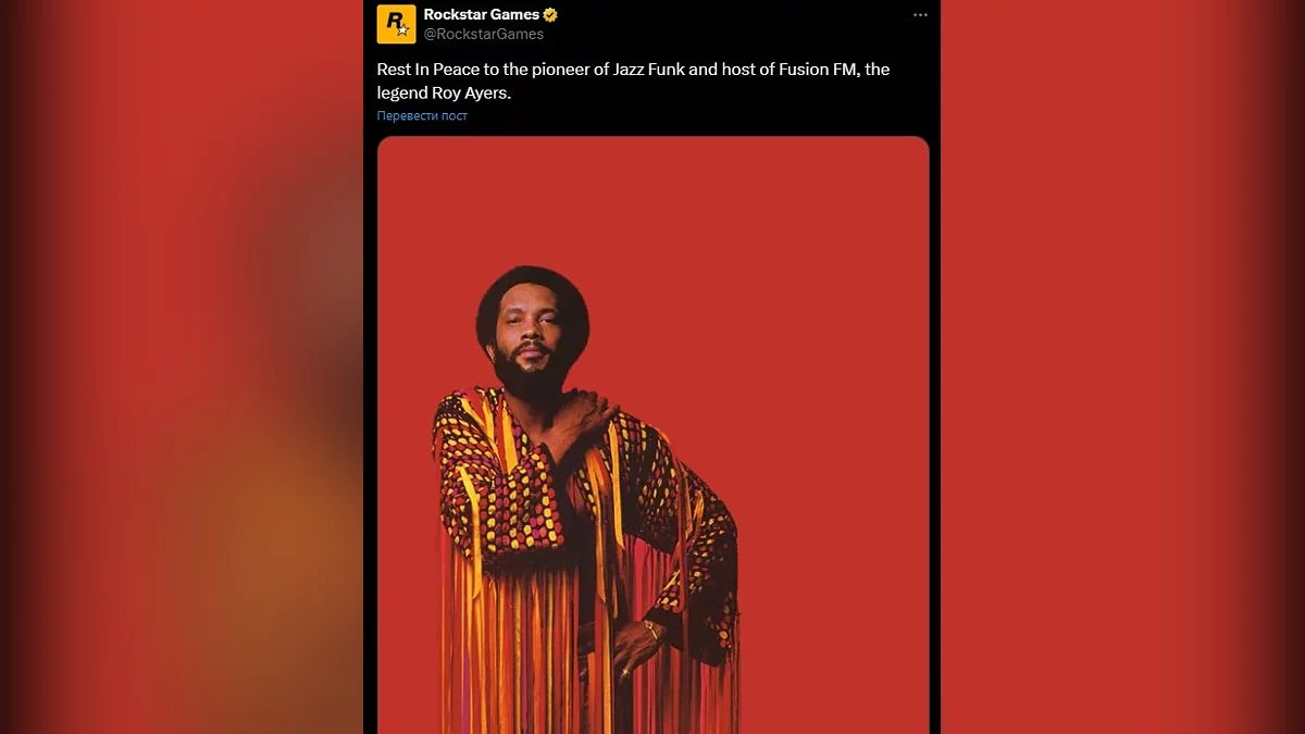 Музыкант умер 4 марта. Rockstar Games почтила его память, опубликовав в соцсетях пост с его фотографией. «Покойся с миром, основоположник джаз-фанка и ведущий Fusion FM, легенда Рой Эйерс», — написала компания в своём посте.