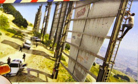Один из пользователей GTAForums опубликовал новый отсканированный из журнала PC Guru Magazine скриншот GTA 5, в котором Тревор карабкается вверх по лестнице на одну из букв в VINEWOOD. Да-да, эту сцену мы уже видели, но теперь буква совсем другая.