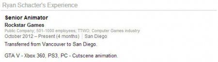 А теперь к более заезженной теме о релизе GTA 5 на PC. Кто-то еще сомневается в том, что он состоится? А вот у ведущего аниматора Rockstar Райана Шактера (Ryan Schacter) сомнений в этом нет, если верить его профилю в сервисе LinkedIn: