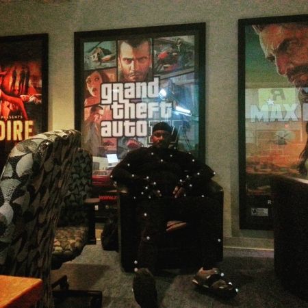 Где именно сделано фото - неизвестно, но если посмотреть на постеры за спиной Шона, то можно предположить, что это одна из студий Rockstar.