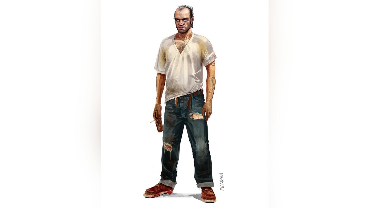 Рокси Вискарра (Roxie Vizcarra), бывший старший иллюстратор Rockstar Games, опубликовала арт с перестрелкой в округе Блейн. А художник Энтони Макбейн (Anthony Macbain), который тоже покинул компанию, продемонстрировал несколько альтернативных образов Тревора и Франклина. Жёлтая маска, которую можно увидеть на последнем арте, не попала в основную игру, по появилась в GTA Online.