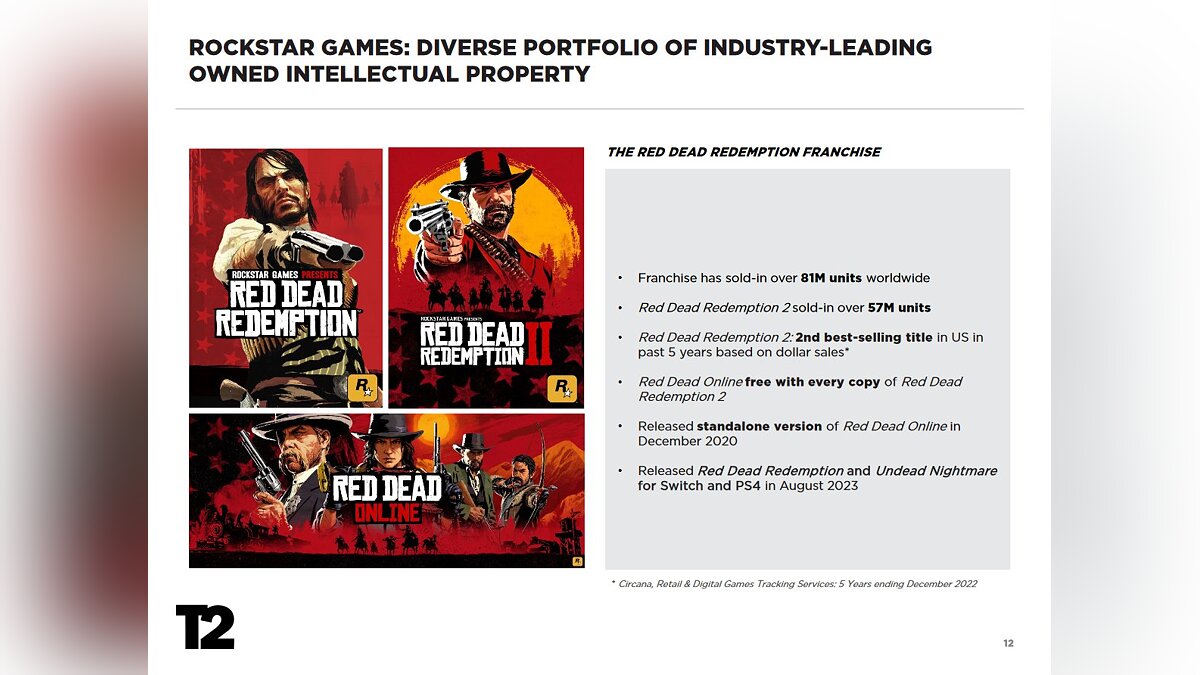 За прошедший квартал компания продала 2 млн копий Red Dead Redemption 2 и 5 млн копий Grand Theft Auto 5. Общие продажи Red Dead Redemption 2 составили 57 млн копий, Grand Theft Auto 5 — 190 млн копий. Продажи серии Red Dead Redemption достигли 81 млн копий, Grand Theft Auto — 410 млн копий.