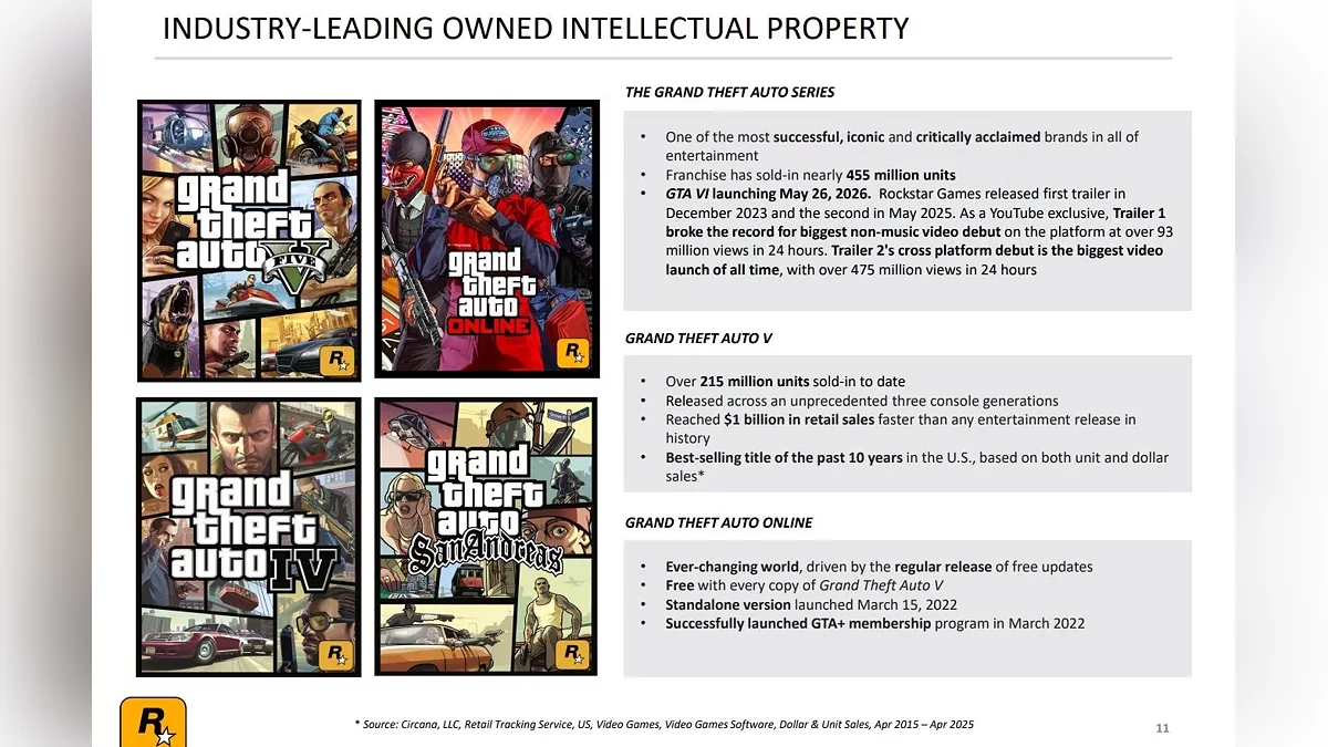 Take-Two опубликовала финансовый отчет за прошедший квартал, закончившийся в июне 2025 года, и поделилась новыми данными о продажах своих серий и игр.