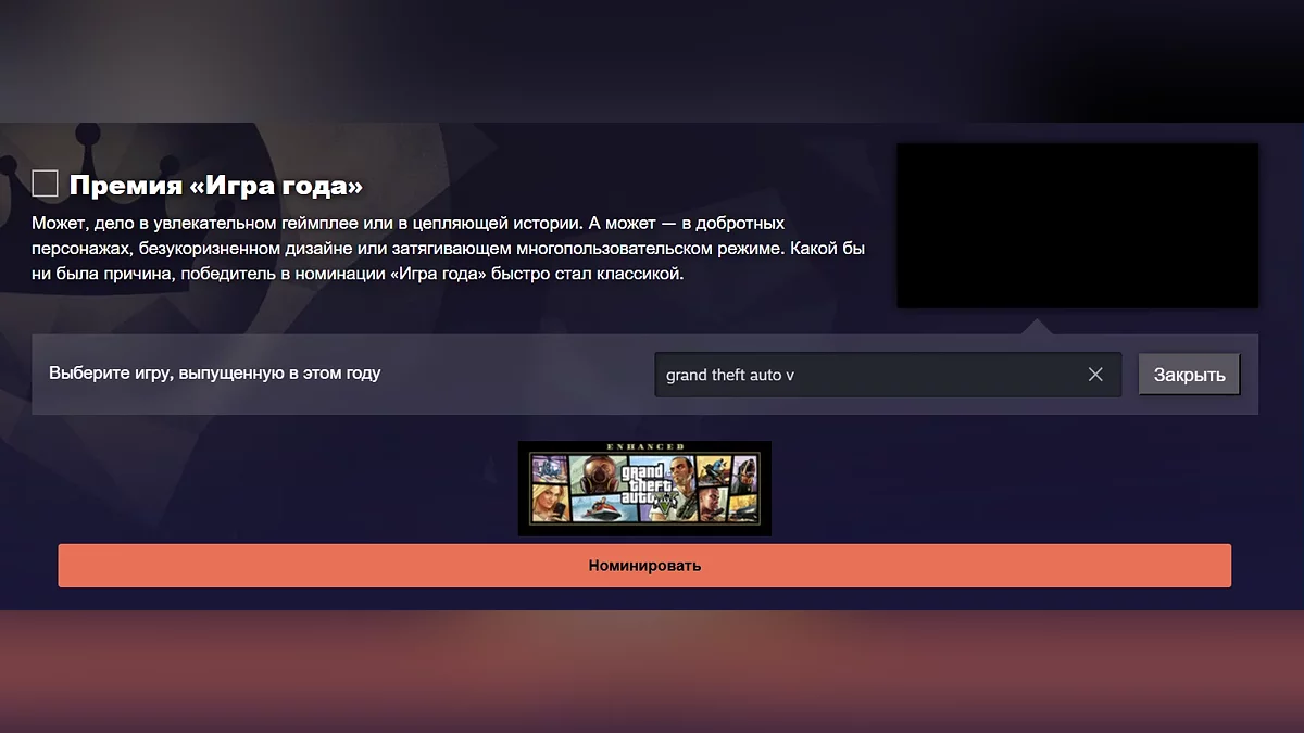 Особенность The Steam Awards в том, что номинантов выбирают только игроки, а не жюри. То есть, если фанаты решат, что GTA 5 достойна GOTY, игра имеет шанс победить.