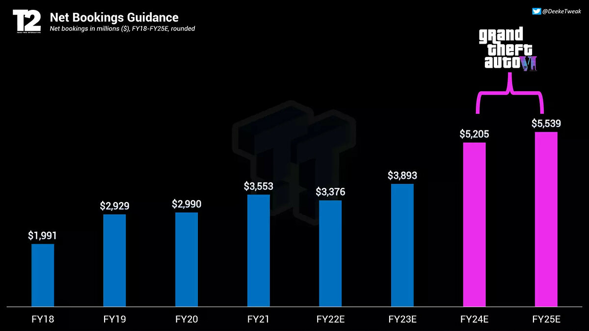 В конце финансового года, который завершится 31 марта 2024 года, выручка Take-Two должна составить 5,2 миллиарда долларов, а на 2025 году — 5,5 миллиарда долларов.