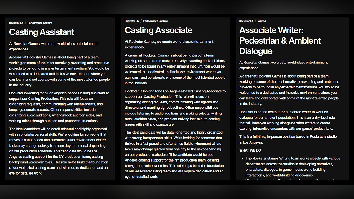 «Rockstar ищет талантливого сценариста, который будет работать над диалогами для нашего окружения. Это роль начального уровня, в которой вам предстоит работать вместе с другими авторами над созданием захватывающих интерактивных встреч с пешеходами в наших играх», — говорится на сайте компании.