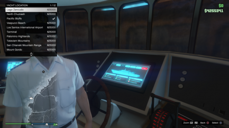 На яхте можно передвигаться в 12 локаций на карте. Каждое передвижение обойдется в $25,000