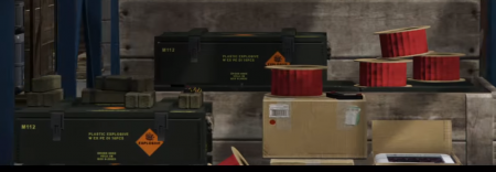 Здесь мы видим взрывчатку и приспособления для изготовления бомб. Можно будет торговать оружием.