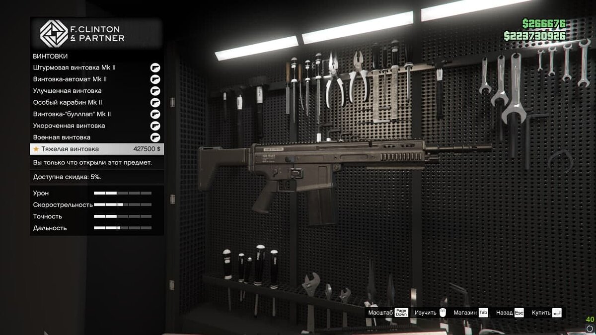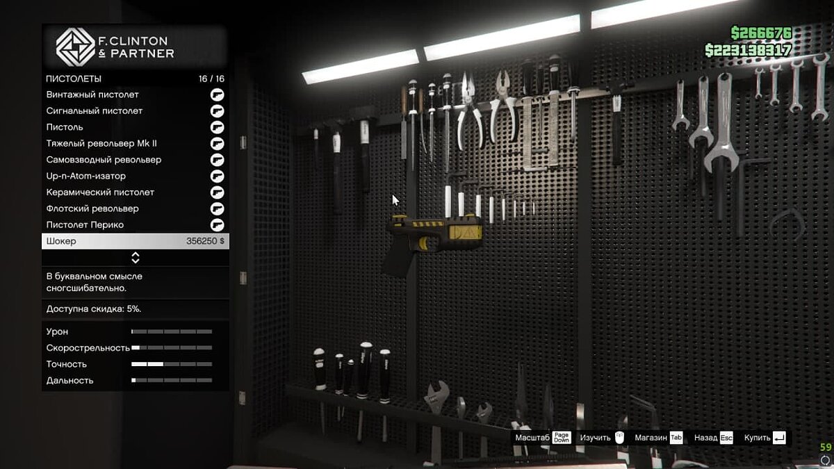 Новое оружие стоит очень дорого. Винтовка — 427 тысяч, а шокер — 327 тысяч GTA$.