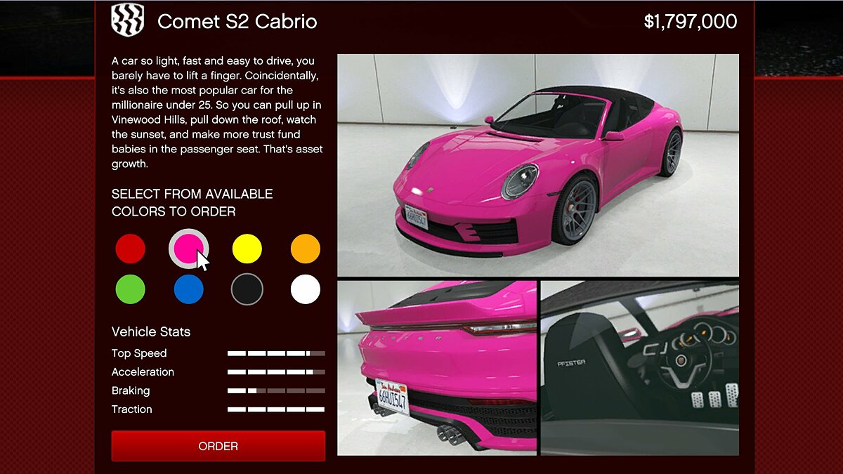 В GTA Online продолжают вводить новый контент из обновления The Contract. Сегодня в игре для покупки доступен новый спорткар: Pfister Comet S2 Cabrio.