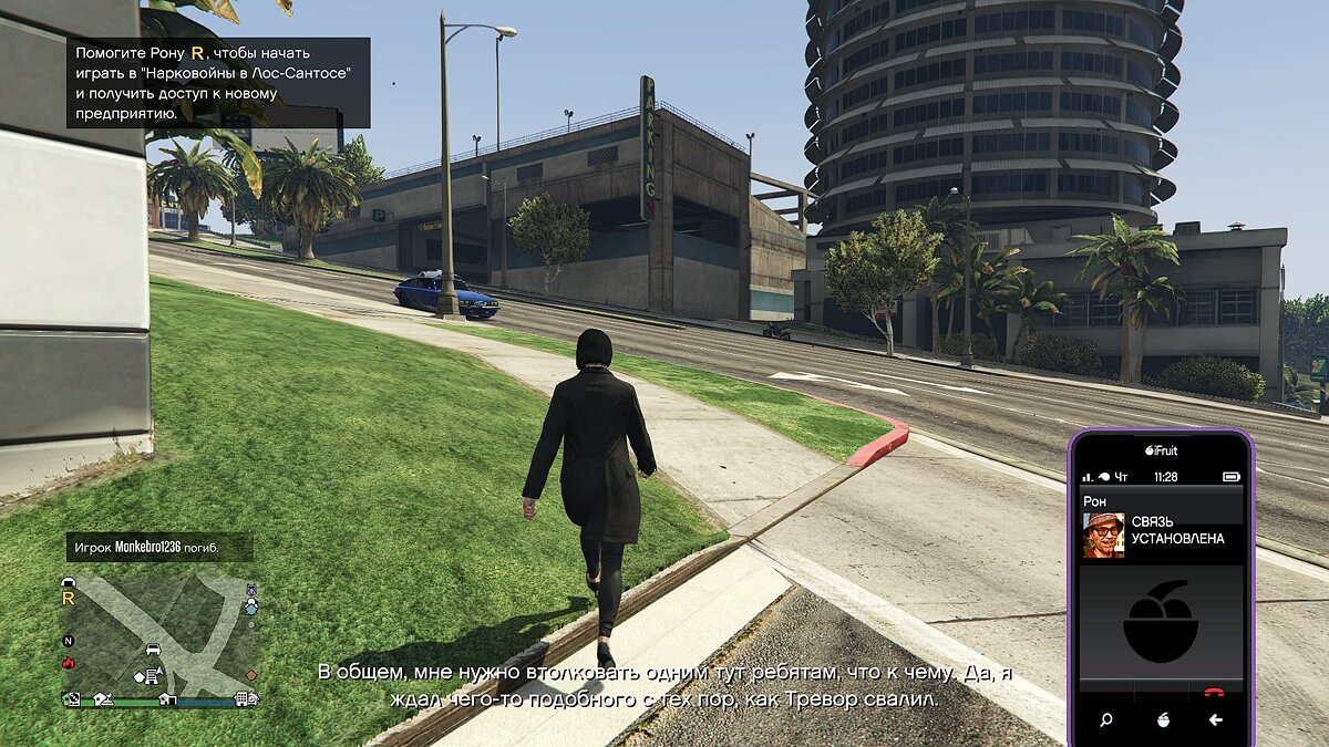 История дополнения начинается с того, что нам звонит Нервный Рон. Он рассказывает про банду, которая появились в городе в поиске наживы. Следом Рон отмечает, что главный герой пятой части, Тревор, уже не при делах и свалил.
