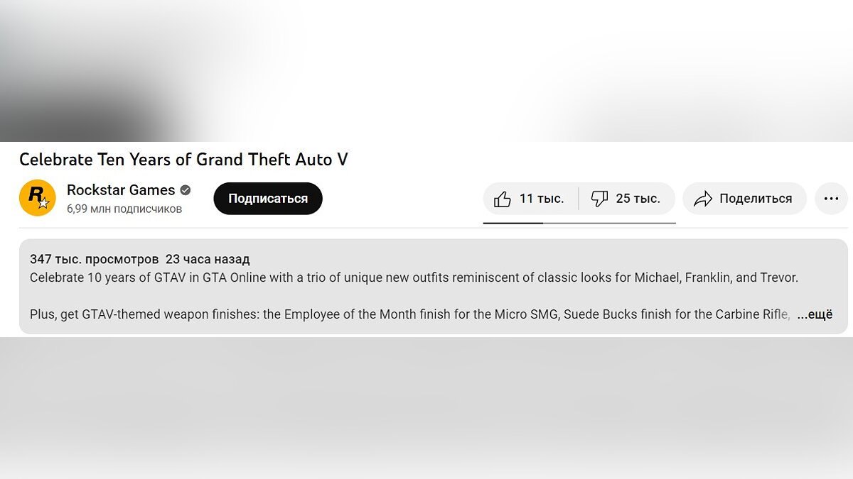 Вчера (15 сентября) Rockstar Games опубликовала коротенький ролик в честь приближающегося десятилетия GTA 5. По этому случаю геймерам предлагают различные награды в GTA Online. Однако, судя по большому количеству дизлайков, игроки оказались крайне недовольны таким незначительным, по их мнению, празднованием юбилея.