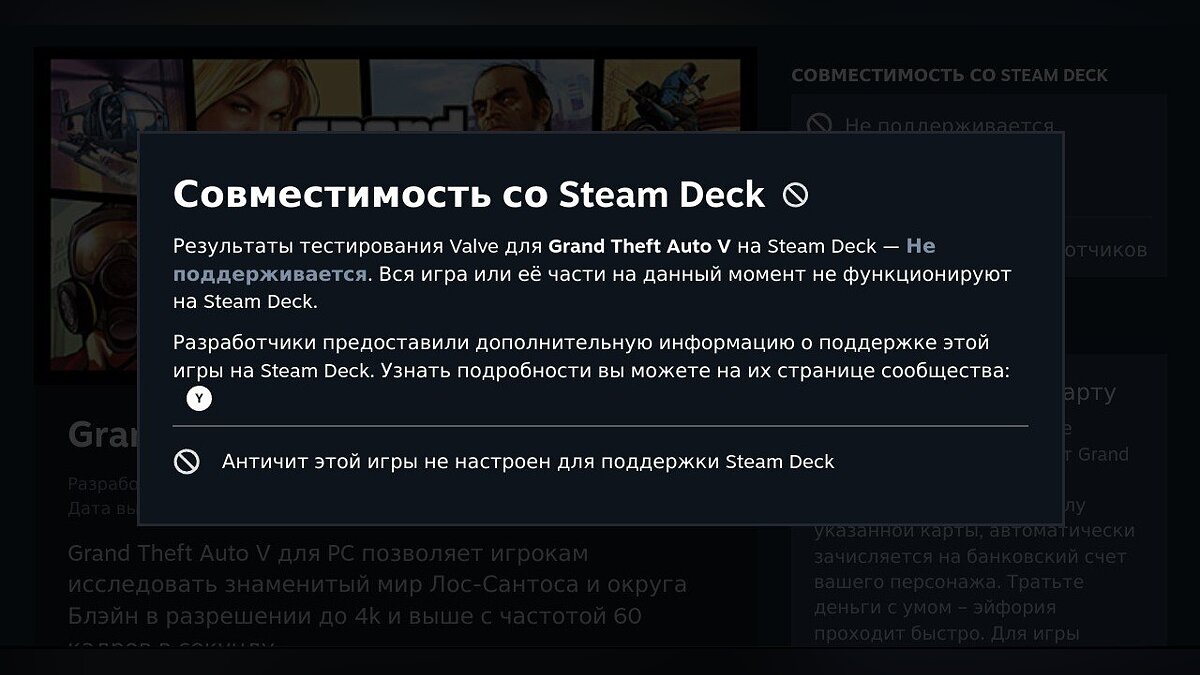 Сообщается, что на Steam Deck в GTA Online можно играть в течение минуты, а после этого игрока выкидывает из сессии. То же самое касается Linux.