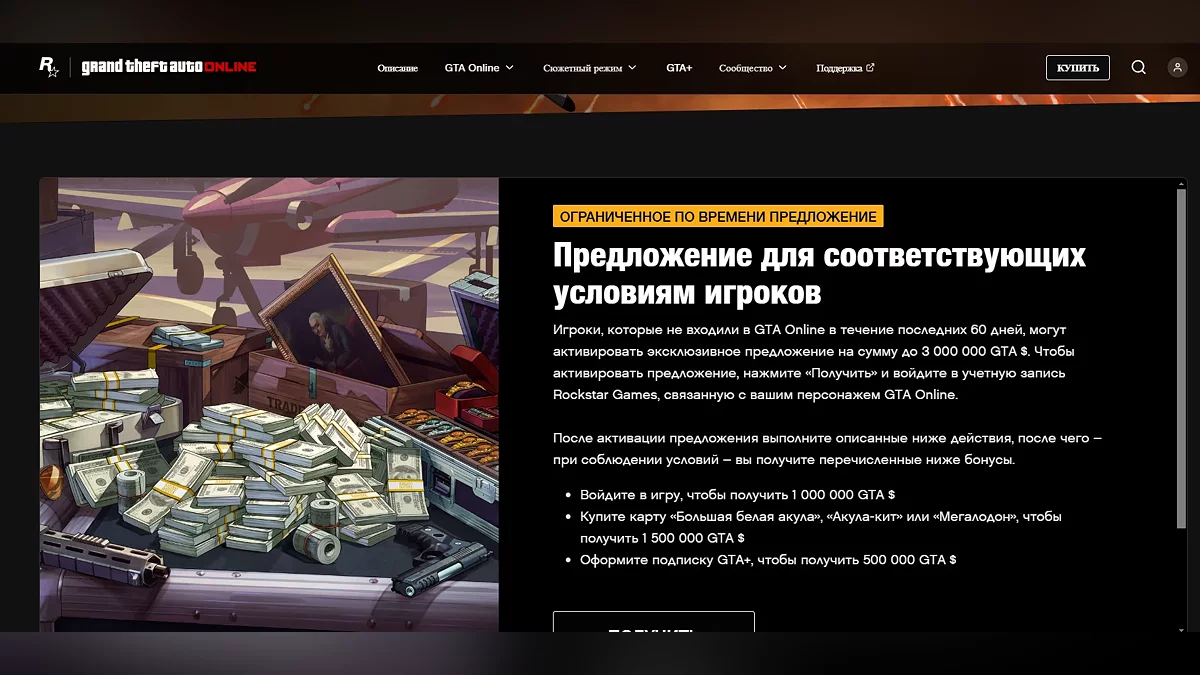 Для игроков Grand Theft Auto Online поступило неожиданное предложение от Rockstar Games. Студия готова подарить 3 000 000 GTA$ за возвращение в игру, однако для этого нужно выполнить ряд условий.